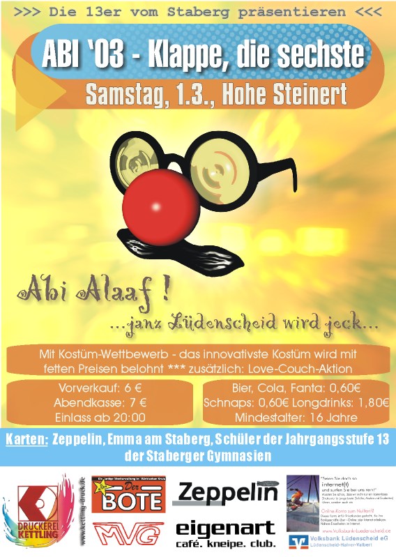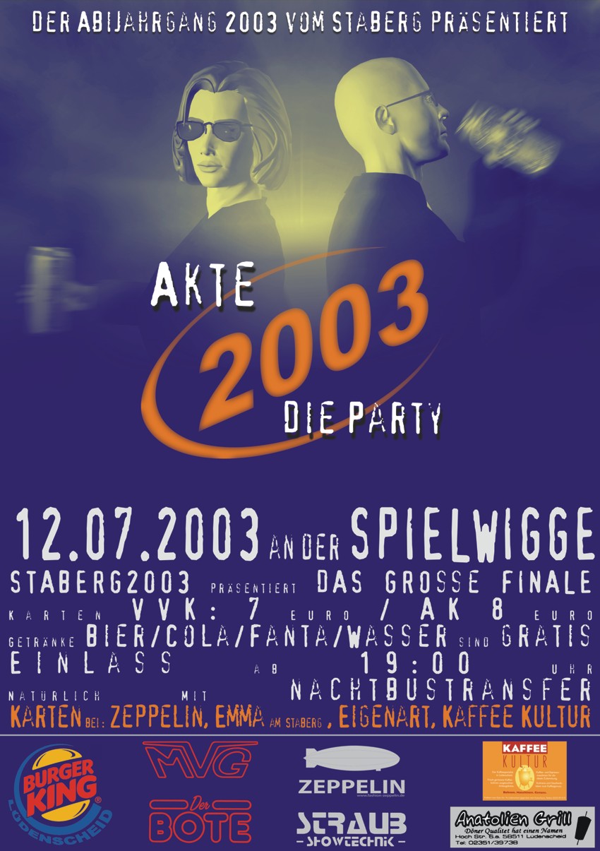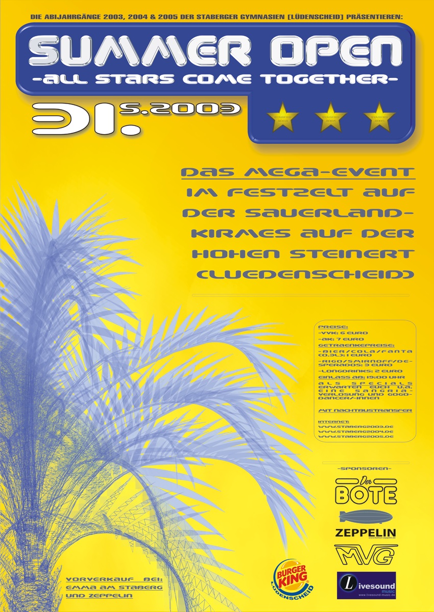 | Party-Plakat "Summer Open" | 3D-Objekt aus dem Plakat | Abi-Party-Plakat "Akte 2003 - Die Party" |