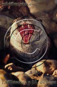 Male of Common Otter (Lutra lutra) defending its burrow / 1.6-1583