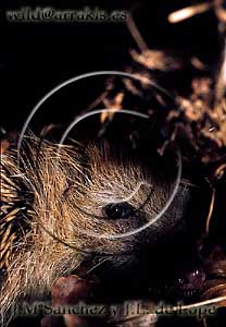 Detail of the head of an European Hedgehog (Erinaceus europaeus) half hidden / 1.6-547