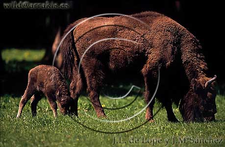 European Bison (Bison bonasus). Female with her calf / 1.6-1807