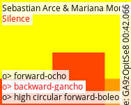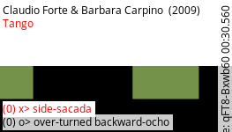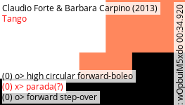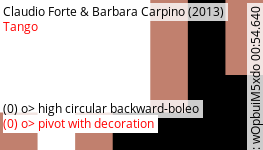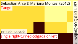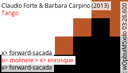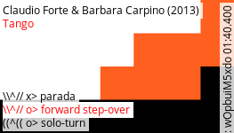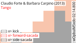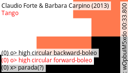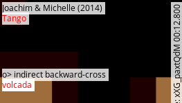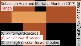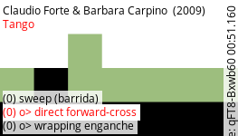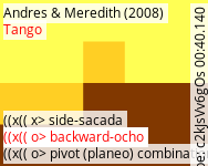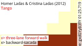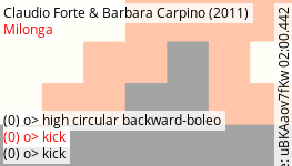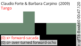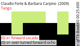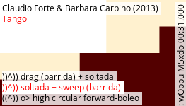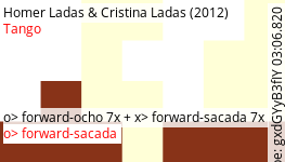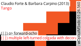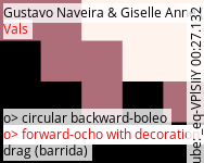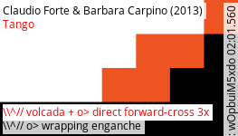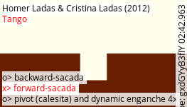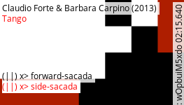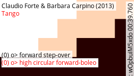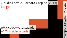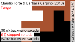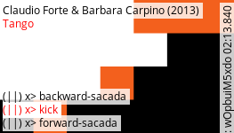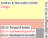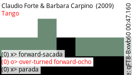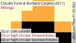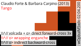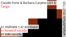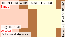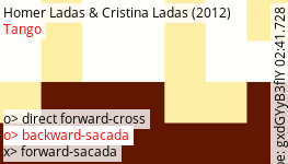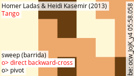 Ocho cortado | Cut ocho | Sudden change of direction leading the follower to cross during her forward walk. | (https://en.wikipedia.org/wiki/Figures_of_Argentine_tango ) | ||