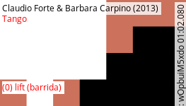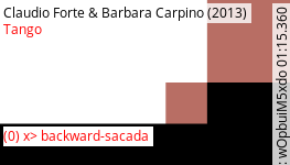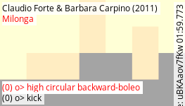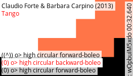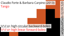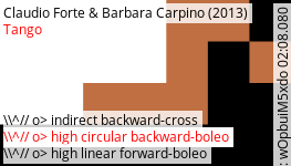 Off-axis move in which the woman leans forward and does forward or back cross or decorative figures with her legs. Volcadas can be done in open and close embrace. In case of closed embrace she is supported by the leader's torso. In open embrace the leader's arm provides support for the suspension. See also apile. | (https://en.wikipedia.org/wiki/Figures_of_Argentine_tango ) Bild 1: (Piotr Cirrus, 2011, Wikimedia) © CC BY-SA 3.0 Bild 2: (Piotr Cirrus, 2011, Wikimedia) © CC BY-SA 3.0 |