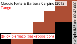Carpa, Apile, Apilado, Volcada | Apile (volcada) | (Off-axis) Position in which both partners are leaning forward, may vary in degree of the tilt or shape. Many fluid and elegant tango figures can be danced in volcada position. | (https://en.wikipedia.org/wiki/Figures_of_Argentine_tango ) Bild: (Piotr Cirrus, 2011, Wikimedia) © CC BY-SA 3.0 |