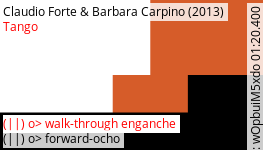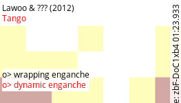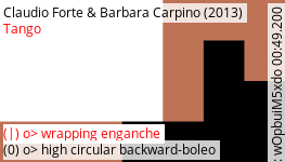 Enganche | Leg wrap | One or both dancers wrap his or her leg around their partner's leg. This wrapping is often sustained or frozen for a moment in time. See also gancho and high leg wrap. | (https://en.wikipedia.org/wiki/Figures_of_Argentine_tango ) Bild 1: (Piotr Cirrus, 2011, Wikimedia) © CC BY-SA 3.0 Bild 2: (Piotr Cirrus, 2011, Wikimedia) © CC BY-SA 3.0 |