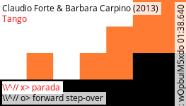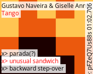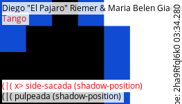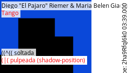 Parada | Parada (stop) | The leader halts the motion of the follower's turning by placing his foot close to her foot. | (https://en.wikipedia.org/wiki/Figures_of_Argentine_tango ) Bild: (Piotr Cirrus, 2011, Wikimedia) © CC BY-SA 3.0 |