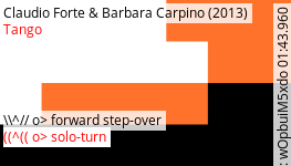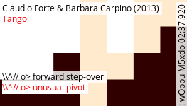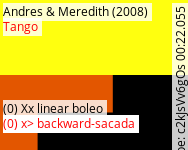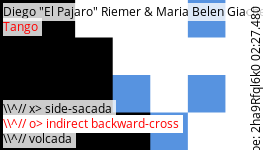 Doble frente | Moving together in one direction. | The woman is in front of the man (see tango al reves style). | (https://en.wikipedia.org/wiki/Figures_of_Argentine_tango ) Bild: (Piotr Cirrus, 2011, Wikimedia) © CC BY-SA 3.0 |