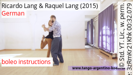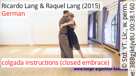 - Ricardo Lang & Raquel Lang (Tango Argentino Köln), YouTube Channel UCHlOM4NDAH0hHM3IyNyrnOA