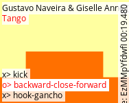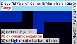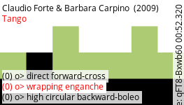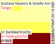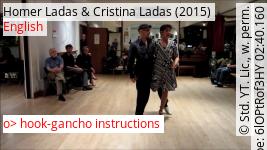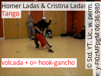 Enganche | Ganchos are steps where one partner (often the follower) kicks under the other's leg and enganches are steps where one partner (again normally the follower) wraps one leg around the partner's leg. They are very emblematic to tango and most non tango dancers will think tango is what these steps are about. | (https://www.youtube.com/watch?v=wEYu8LKElY8 ) | |||