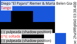 Pausa | Pause; wait: Hold a position or pose for two or more beats of music. See Titubeo. | (http://www.tejastango.com/terminology.html ) | |||