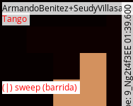 Barrida | A sweep | a sweeping motion: One partner’s foot sweeps the other’s foot and places it without losing contact. Barridas are done from either the outside or the inside of the foot of the receiving party. The technique is different for the inside and outside barridas. See Arrastre and Llevada. | (http://www.tejastango.com/terminology.html ) | ||