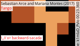 Sacada | Back sacada | Displacement of partner's unweighted leg. | (https://en.wikipedia.org/wiki/Figures_of_Argentine_tango ) Bild: (Piotr Cirrus, 2011, Wikimedia) © CC BY-SA 3.0 |