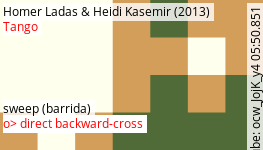 Backward cross step | Back step with one leg crossing in the back of the other leg. [See Forward cross step] | (https://en.wikipedia.org/wiki/Figures_of_Argentine_tango ) | |||